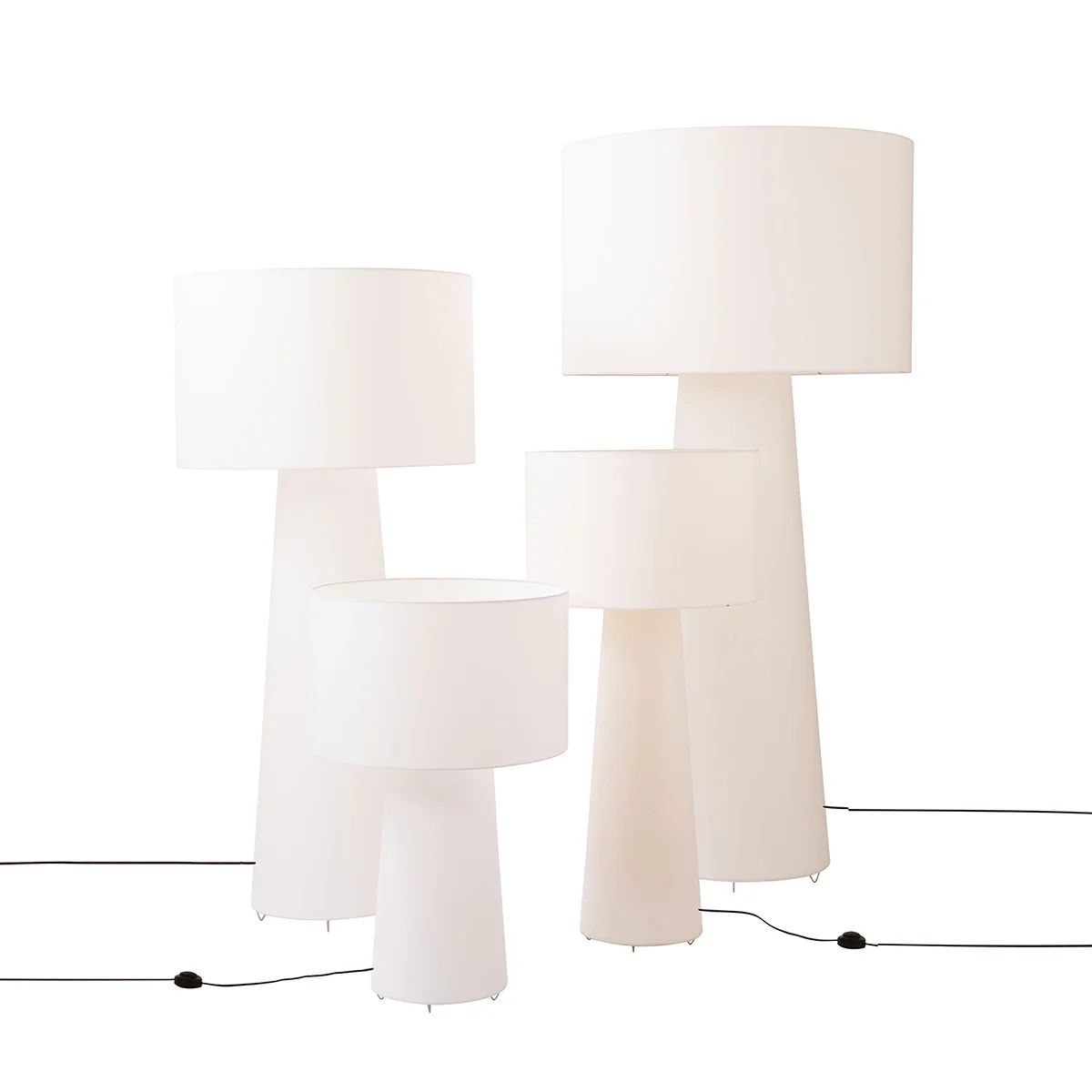 Designed by Marcel Wanders, the Big Shadow lamp offers a striking, free-standing diffused light, available in various sizes and heights. One of Wanders' early masterpieces, this lamp blends traditional design influences with modern materials and techniques, creating a unique take on the classic abat-jour table lamp. The fabric covering extends from the top to the base, enveloping the entire structure in soft light for a warm, cozy ambiance. Its chrome varnished metal frame and polyamide- and viscose-covered exterior bring both elegance and comfort to any space.