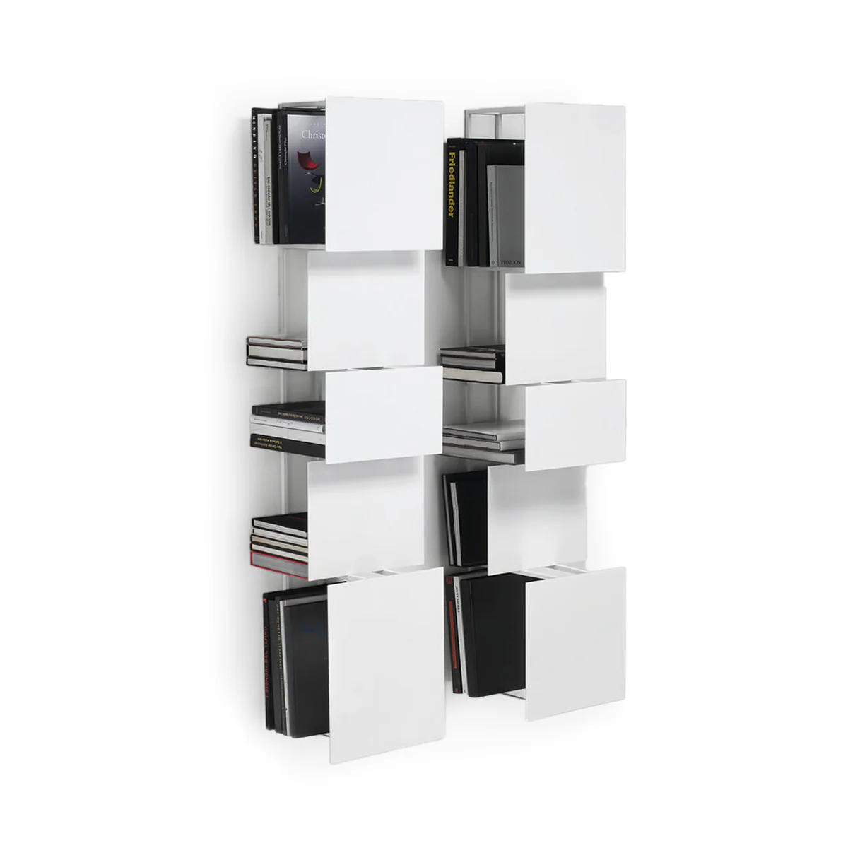 A highly sculptural alternative to typical bookcases, young designer Victor Vasiley's Bukva gives the impression of a work of art hanging on the wall thanks to its square, detached and tangent elements. Vasiley design for Living Divani serves as an opportunity to create a dynamic moving surface that breaks up the fixed image of the wall.