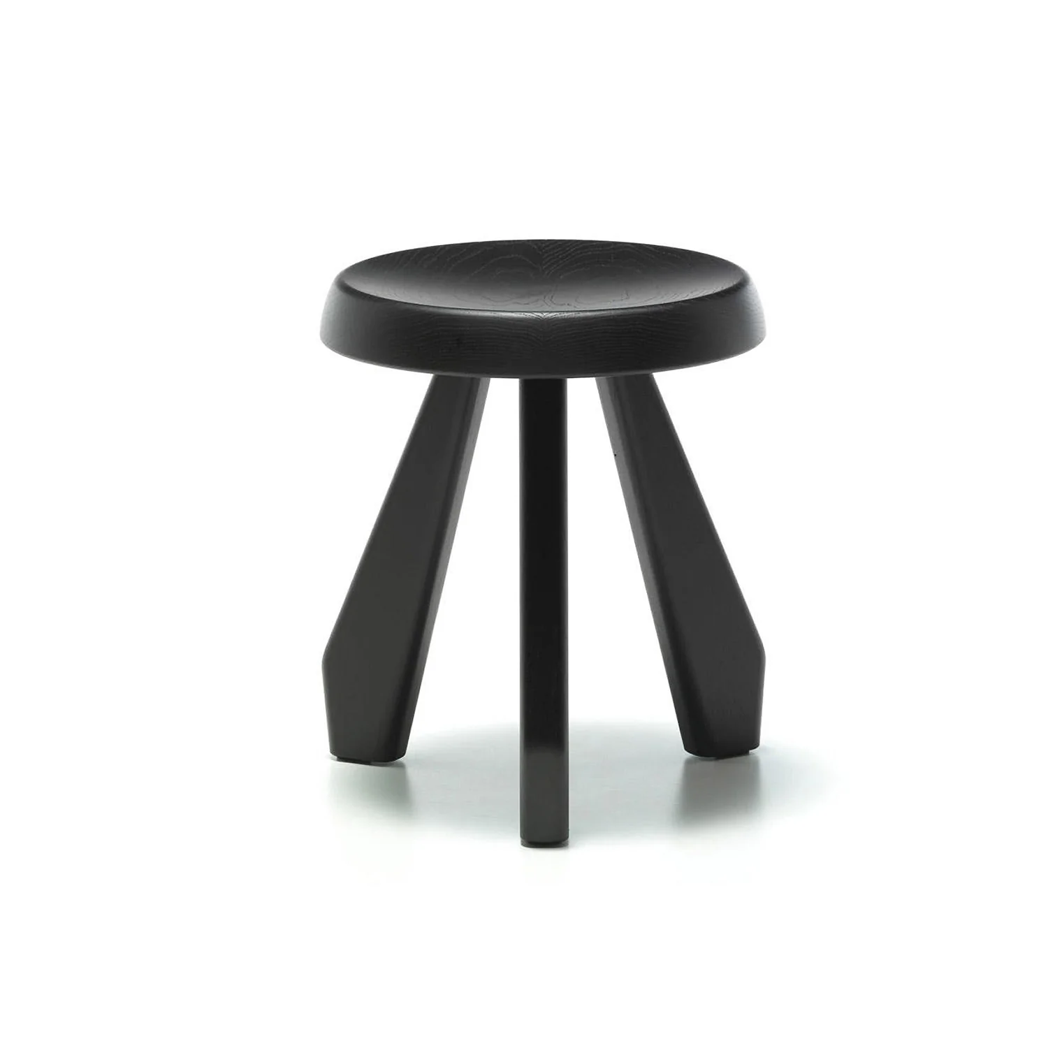 Inspired by the traditional milking stools used by shepherds in the Alps, Charlotte Perriand’s Tabouret Stools exude a simple honesty in form, material, and function. The stools, available in three wood finishes and two sizes, are distinguished by their gently indented turned seat and their stylized tripod legs. The low stool, called the Tabouret Berger, features three hand-turned solid wood legs while the high stool, called the Tabouret Meribel, features three unique angular legs.